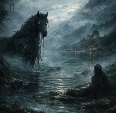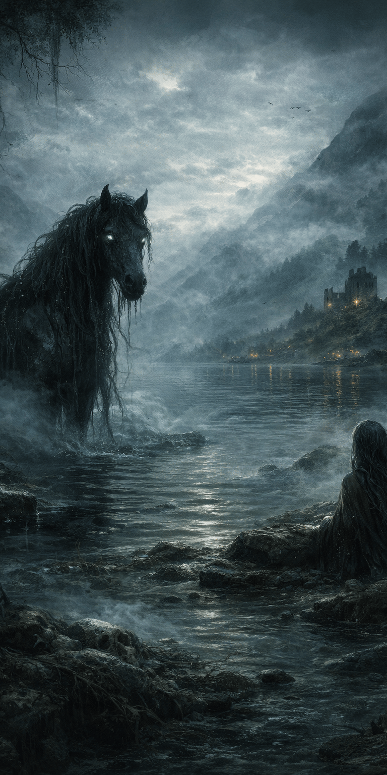 Some stories claim the creature did not always take the shape of a horse. On rare occasions, it was believed to walk among humans, blending into isolated Highland communities before leading the unwary toward the water. Those who followed were never seen again, and their absence was quietly accepted.