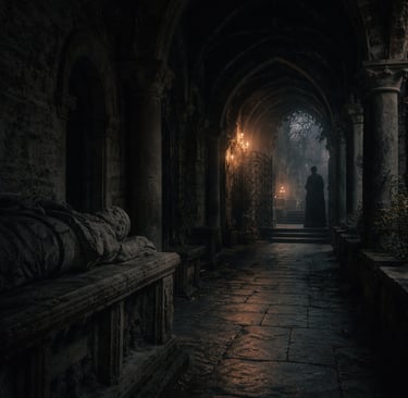 One persistent account tells of a traveller lingering in the cloister at twilight. As he turned to leave, he heard footsteps behind him, measured and deliberate. Believing another visitor was approaching, he stepped aside. The sound halted. When he looked back, the passage stood empty, and the silence that followed seemed heavier than before.
